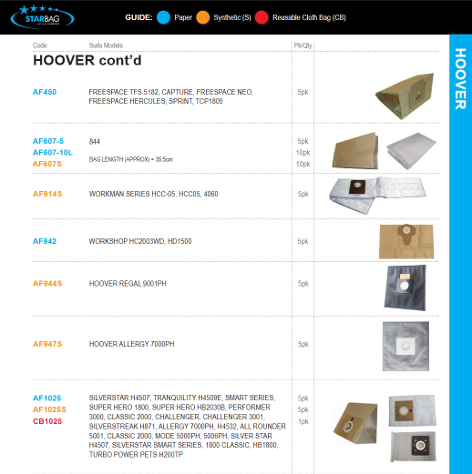 - Packet of 5 synthetic dust bags to suit Hoover Allergy and Sauber Allergy 7000PH bagged vacuum cleaners
