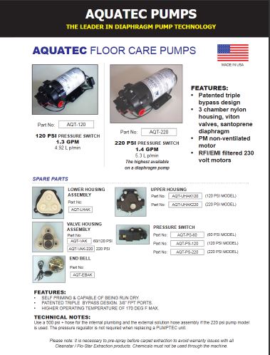 CLEANSTAR - CARPET EXTRACTION AQUATEC FLOOR CARE PUMPS(220 PSI/ 1.4 GPM)