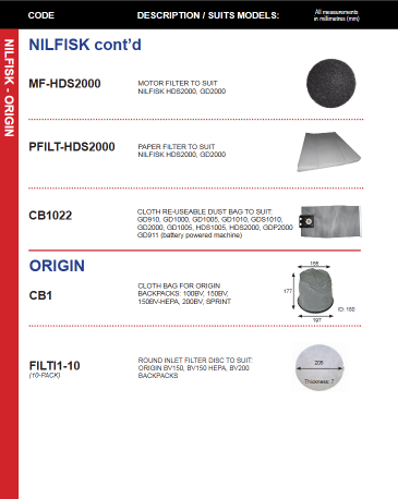 - Origin: 100BV, 150BV, 150BV-HEPA, 200BV, Sprint.