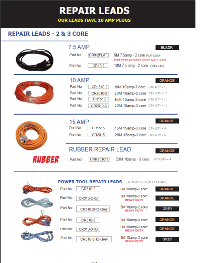 LEAD1CLEANSTAR - 10 METRE 7.5 AMP 2-CORE CIRCULAR REPAIR LEAD (CR10-2)0M2CORE CIRC 7.5ABLACK