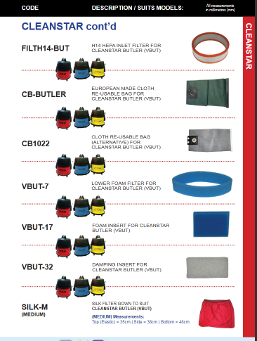 - Cleanstar Butler (VBUT, VBUT-B, VBUT-R, VBUT-H14-Y, VBUT-H14-B, VBUT-H14-R)