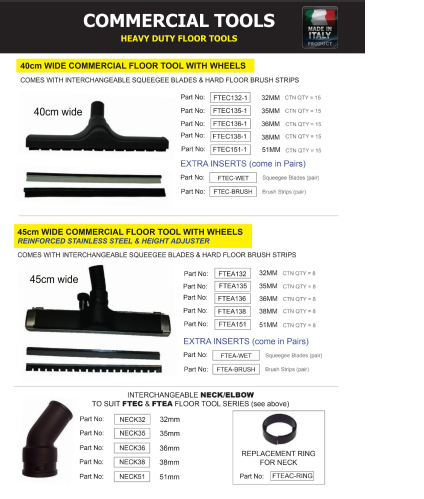- For all wet and dry commercial vacuums that use 32mm tools and accessories