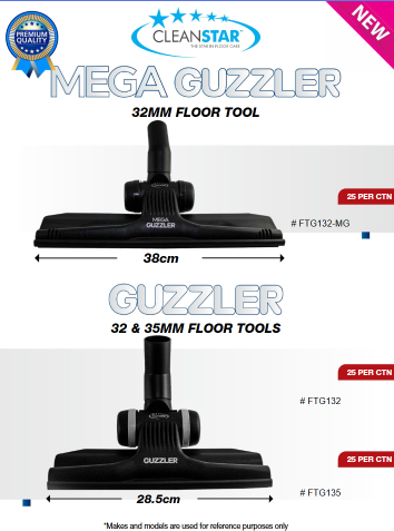 - High-quality 35mm Guzzler vacuum floor tool for superior pickup on both hard floors and carpet