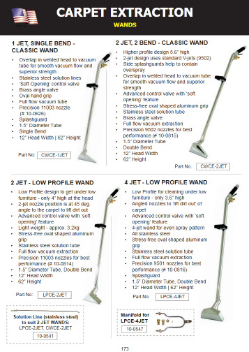 • Single 4 jet low profile carpet extraction wand