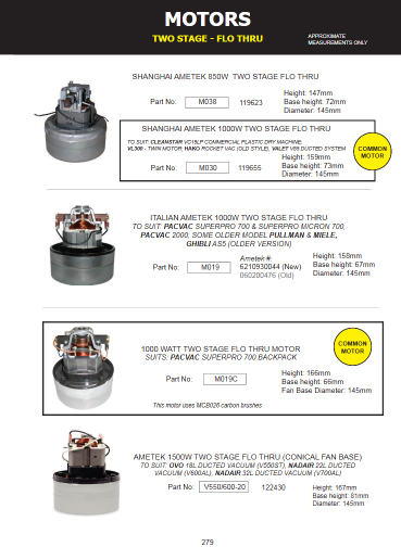 CLEANSTAR - AMETEK 1000 WATT TWO STAGE FLO THRU VACUUM CLEANER MOTOR
