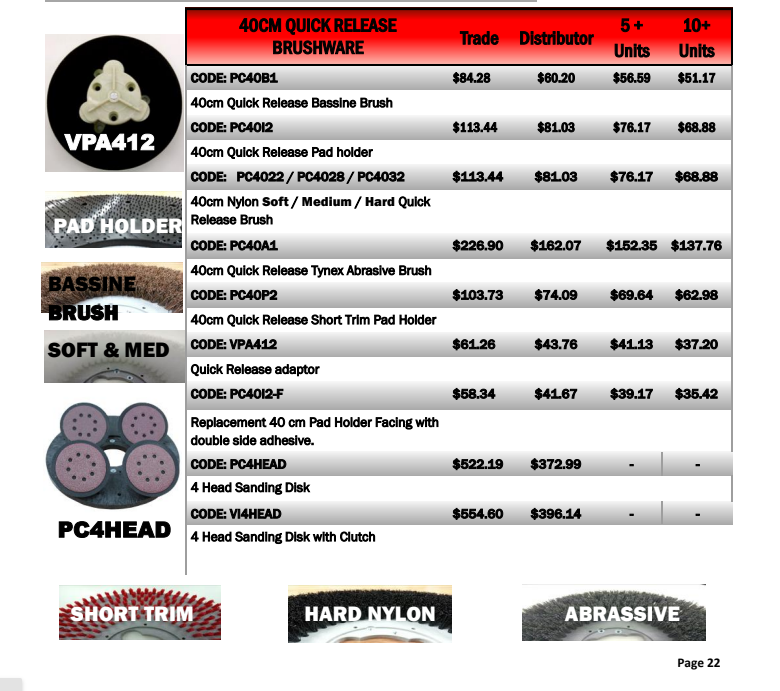 This is a PV-PC40I2-F POLIVAC PV25 SV25 PAD HOLDER FACE replacement Brush/Roller for Polivac Scrubbers.