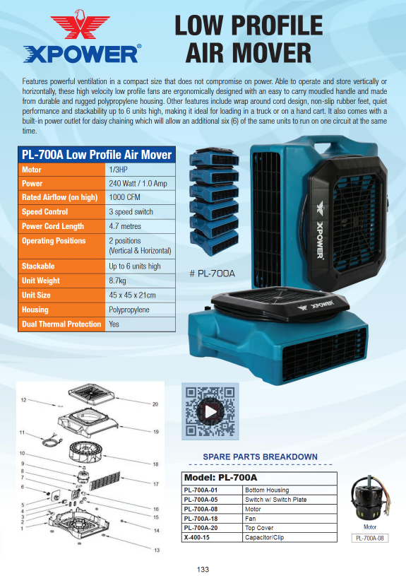 The Bottom Housing – PL‑700A is a precision‑molded replacement housing designed specifically for the XPOWER PL‑700A Air Mover. As a critical structural component, this bottom housing ensures the integrity, stability, and optimal airflow of your air mover unit. Manufactured from durable, impact‑resistant materials, the housing resists cracking, warping, and corrosion in demanding operating environments-ideal for commercial cleaning, water damage restoration, drying rooms, and industrial use.