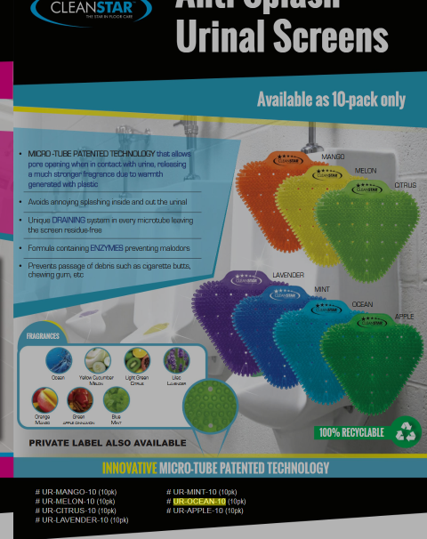 Whether you're maintaining public restrooms or improving your office washroom, the UR-OCEAN-10 CLEANSTAR urinal screens offer a reliable, cost-effective solution. With a 10-pack, you're stocked for consistent freshness and cleanliness.