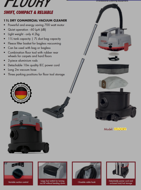 Designed for durability and convenience, the VFLOORY Cleanstar vacuum is lightweight and easy to maneuver, ensuring hassle-free operation. Whether you’re dealing with dust, debris, or pet hair, this dry vacuum delivers consistent performance to keep your space spotless. Upgrade your cleaning routine with the reliable and efficient VFLOORY CLEANSTAR 11L 700W Dry Vacuum Cleaner today.
