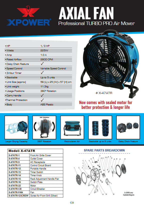 This portable handle is a genuine OEM replacement part specially made to suit the XPOWER X-47ATR Axial Air Mover. It provides a robust and ergonomic grip, enabling easy transport between job sites and ensuring you can carry the unit comfortably even when it’s stacked or in use. Manufactured with durable material to match the X-47ATR’s rugged ABS housing, the handle helps maintain the unit’s professional-grade mobility.