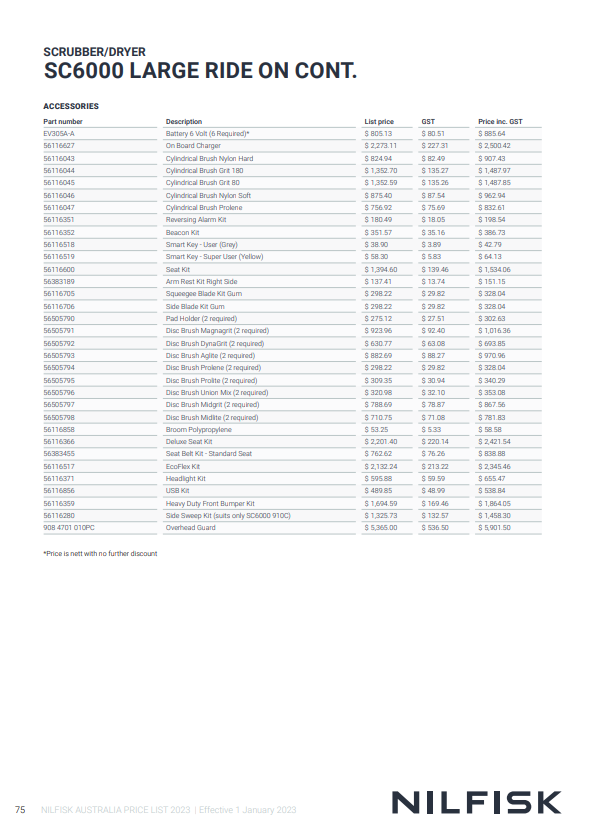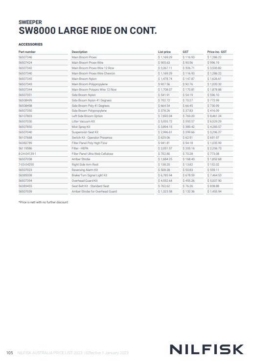 The NILFISK Seat Belt Kit for Standard Seat is designed to enhance operator safety by securing the user during operation of Nilfisk and Clarke ride-on floor scrubbers. This kit includes a durable seat belt assembly compatible with various Nilfisk and Clarke models, ensuring compliance with safety standards and providing peace of mind during cleaning operations.