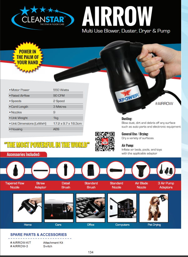 • XPOWER A-2 Airrow 550 Watt Multipurpose Handheld Blower, Duster, Dryer and Pump (AIRROW)