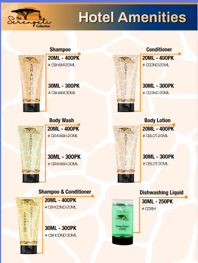 - These luxury hotel guest amenities are part of The Serengeti Collection by Cleanstar