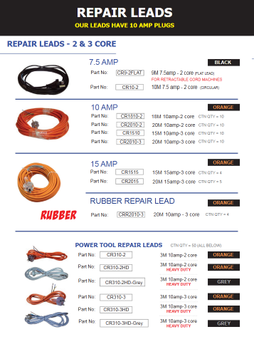 CLEANSTAR – RUBBER REPAIR LEAD (20M 10AMP 3CORE)