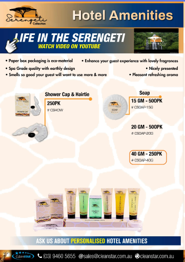 - These luxury hotel guest amenities are part of The Serengeti Collection by Cleanstar