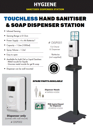 - Single replacement Touchless Hand Sanitiser and Soap Dispenser unit only