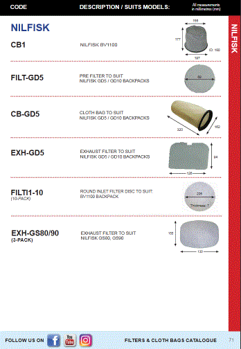 - Pre Filter for Nilfisk GD5, GD10 Backpack Vacuum Cleaners