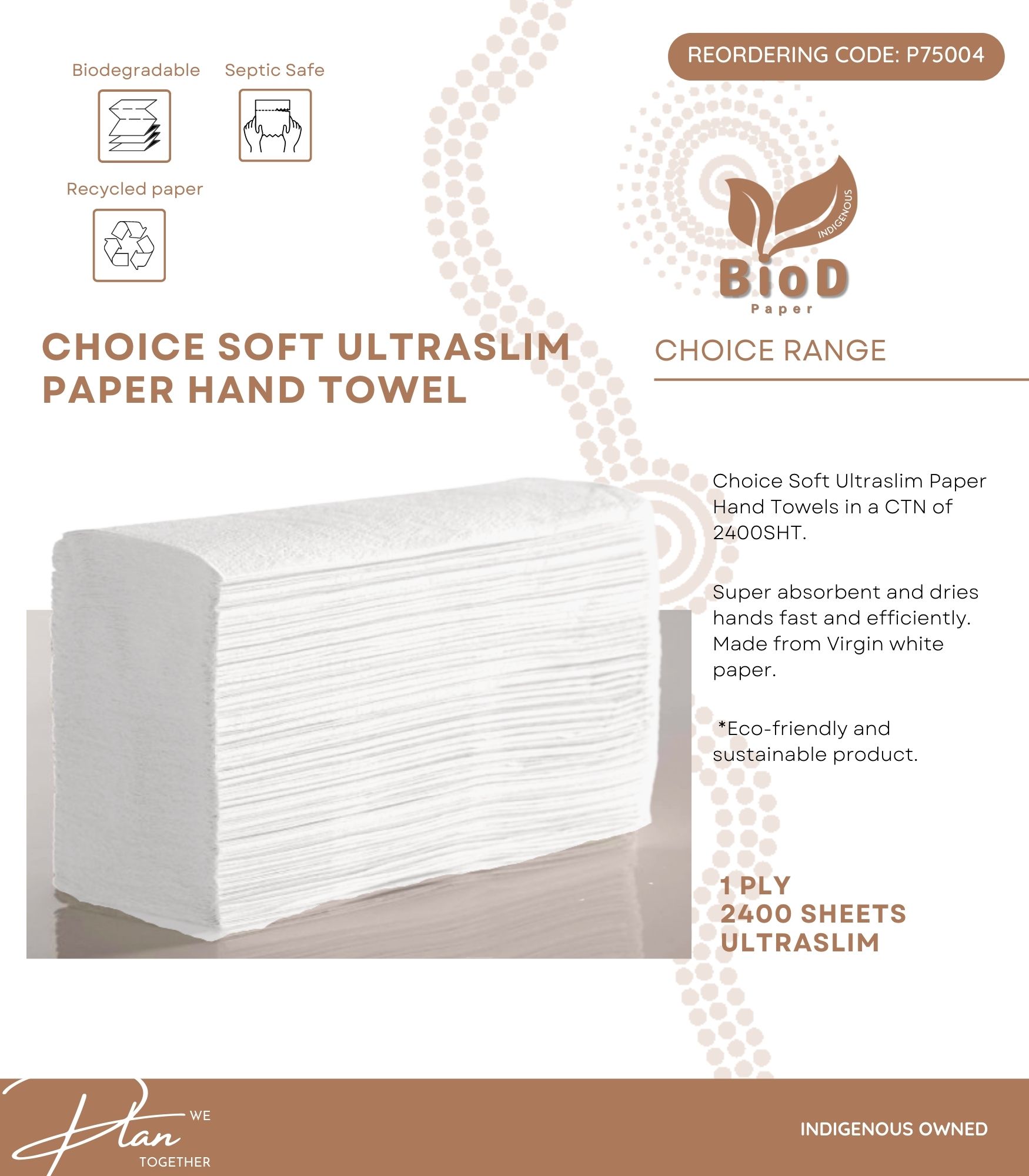 (INDIGENOUS OWNED) BIOD - CHOICE SOFT COMPACT PAPER HAND TOWEL 120X20 250L X 195W 2400