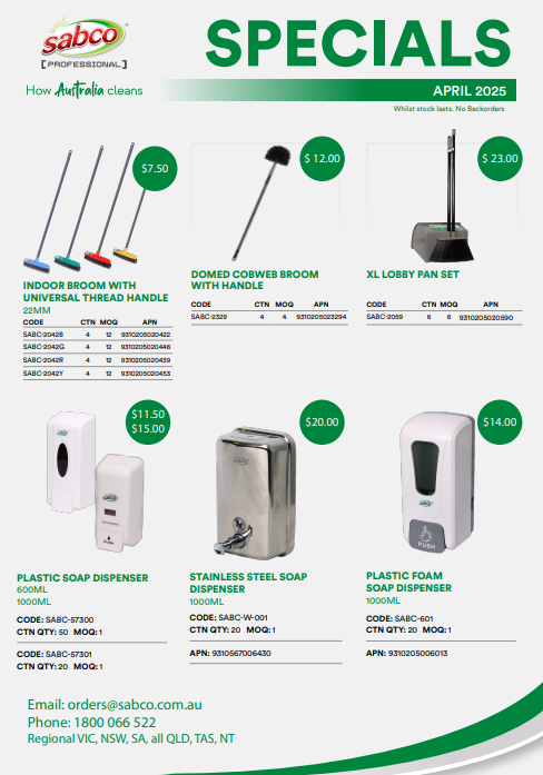 To access our top-tier products, contact your Sabco Professional sales representative or trusted wholesale distributor. They can guide you through our extensive product catalogue, including Cobweb Brooms. This reflects our commitment to enhancing your business operations.