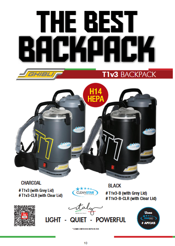 CLEANSTAR – GHIBLI T1 BACKPACK VACUUM CLEANER - VERSION 3 - BLACK WITH CLEAR LID (T1V3-B-CLR)